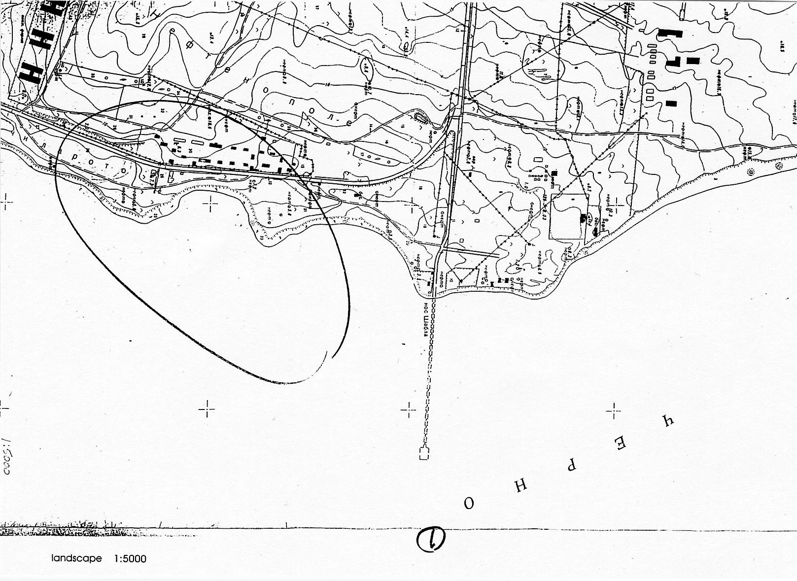 Band of buildable areas between buffer zones, paths and ways. 1:1000